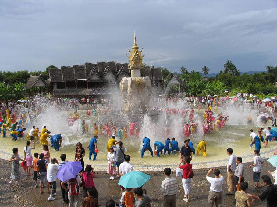 傣族新年。時(shí)在傣歷六月二十四到二十六日(夏歷四月中旬),節(jié)期三、五天。節(jié)日清晨,男女老幼沐浴更衣,到佛寺賧佛,即給佛像灑清水洗塵,然后互相潑水,除疾消災(zāi)。后演為以潑水為戲的節(jié)日。相傳,古有火魔無(wú)惡不作,搶走7個(gè)姑娘。最年輕的姑娘儂香,得知了殺死火魔的秘密:拔下它的頭發(fā)把它勒死。魔頭成一團(tuán)火球,落在哪里,哪里就起火。姑娘們即挑水相潑,滅了邪火。此傳說(shuō)相沿成習(xí),漸成潑水節(jié)。一說(shuō)此俗源于印度,婆羅門教徒每年此時(shí)到河中沐浴,洗去罪惡;年邁者不能下河,子女便為其潑水洗罪。后傳入中國(guó)傣族地區(qū)。