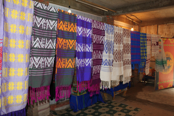云南傣錦歷史悠久,風(fēng)格古樸,以其織工精巧、圖案別致、色調(diào)鮮艷、堅牢耐用和富有民族特色而著稱。它主要流傳和盛行于云南省南部的西雙版納傣族自治州,西南部的德宏傣族景頗族自治州、耿馬傣族佤族自治縣、景谷傣族彝族自治縣,以及孟連傣族拉祜族佤族自治縣等傣族較聚居的區(qū)域。云南傣錦是一種以絲線、毛線、棉線、麻線、晴綸線、金絲線等材料為原料,采用傣族傳統(tǒng)的木架織機手工操作,經(jīng)提花、織造等工藝形式制作成的長條形織錦物,是云南的傣族人民從事宗教活動和美化生活必不可少的物品。傣錦長短不一,幅寬一般為20-60厘米不等。因其花紋絢麗多彩、形象生動、變化多端 、呈立體形,在云南少數(shù)民族織錦中獨樹一幟,享有很高的聲譽。傳統(tǒng)的云南傣錦按構(gòu)成形式和材料主要有兩種即西雙版納傣錦和德宏傣錦。西雙版納傣錦以白色為底,用紅色和黑色緯線織成花紋,傣錦線條寬窄有致,形體夸張簡練,圖案較為規(guī)律化,具有粗獷的質(zhì)樸感和濃厚的裝飾性;而德宏傣錦則色調(diào)較為濃重,常用黑、紅、翠綠、黃、藍等濃艷色彩的絲線和棉線摻用金絲錦線織制,圖案以菱形、方形、六角形及回形紋等幾何形為主,織錦鮮艷奪目,結(jié)構(gòu)嚴(yán)謹(jǐn),紋飾古雅,尤顯華麗。