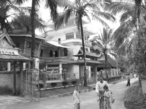 覺悟的菩提樹下,是橙色的佛寺,小和尚攤開構紙抄寫的經(jīng)書,輕輕誦讀,構樹婆娑,掛滿鳥語。