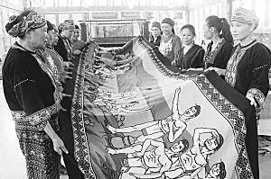 歷時(shí)一年時(shí)間織造,長(zhǎng)186.7米黎族民俗風(fēng)情長(zhǎng)卷織錦壁掛《錦繡黎家》,日前喜獲上海大世界基尼斯世界紀(jì)錄證書,成為世界織錦項(xiàng)目之最。這幅黎錦長(zhǎng)卷由海南省民族研究所織錦工藝研究人員設(shè)計(jì),五指山鑫達(dá)民族織錦旅游開(kāi)發(fā)中心于2012年4月初,在三亞檳榔河國(guó)際鄉(xiāng)村文化旅游區(qū)開(kāi)始織造工作。