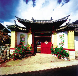 束河、沙河古村鎮(zhèn)到處都是納西族的田園式庭院。大門的裝飾與圍墻和屋脊的裝飾相呼應(yīng),庭院里種了許多植物,高的果樹,矮的花草,就像一個(gè)小花園,和田間彌漫著的野薔薇都散發(fā)著令人陶醉的幽香。
