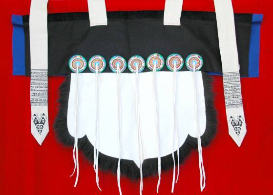 綴繡花圓布盤羊皮女披肩,主要流行于云南省玉龍納西族自治縣和麗江古城一帶,是當?shù)丶{西族婦女的傳統(tǒng)背飾,...
