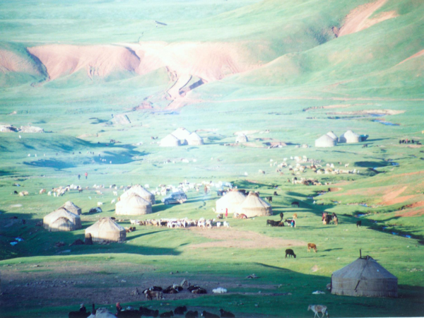 柯爾克孜族世代以游牧為生,在漫長的歷史發(fā)展過程中,柯爾克孜人結合本民族逐水草而居、頻繁遷徙的特點,充分利用游牧資源,創(chuàng)造出了極具民族特色的建筑文化。柯爾克孜族的傳統(tǒng)建筑是氈房,這種建筑可以隨時拆卸與安裝,而且重量輕,易于搬運,是柯爾克孜人發(fā)揮聰明才智創(chuàng)造出來的建筑精品,是世代柯爾克孜人智慧的結晶。
