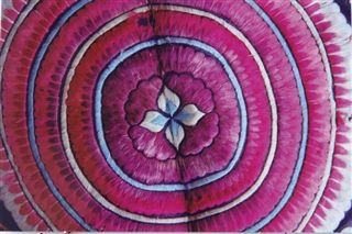 另外,土族服飾的演變,還源于關(guān)于丹陽公主化為金色鳳凰的傳說,人們?yōu)榧o(jì)念她而穿鳳凰羽毛一般華麗的服飾。因而,土族婦女至今仍然保存著身穿綠色夾襖,下穿緋紅色百褶裙,腳穿繡花翹尖鞋的裝束。裙子是三川婦女獨有的服飾之一,土族語稱之為“禾兒莫”。根據(jù)著裝者的年齡大小,裙子有鮮紅、粉紅、紫紅三種,材質(zhì)多選用棉布、綢緞,為了耐臟,下擺處還鑲有一圈寬25厘米的黑布。黑布與紅布的連接處鑲有兩道花邊,使紅色百褶裙更為好看。過去,婦女除了下地干活和下廚外,都必須穿裙子,否則會被視為無禮。