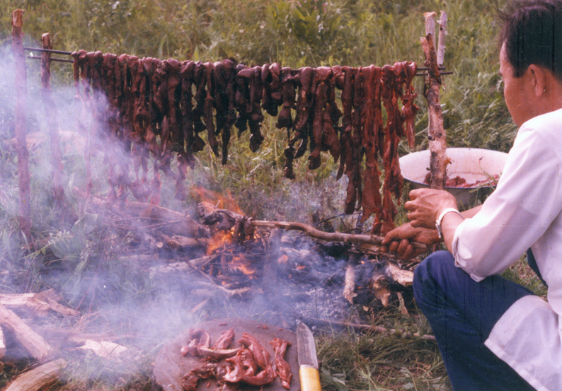 肉食分為家畜家禽和野獸野禽以及魚類等,吃法有曬、煮、烤等,但是不炒,其中“手把肉”最為著名。布特哈、齊齊哈爾、璦琿等地達斡爾族因定居普遍養(yǎng)豬,年節(jié)時宰殺。布特哈地區(qū)因狩獵還占有一定比重,肉食以袍子及野豬等獸肉為主。