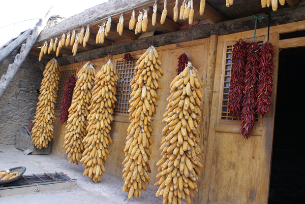 羌族人在自家小院里儲存的食物(劉軍攝)