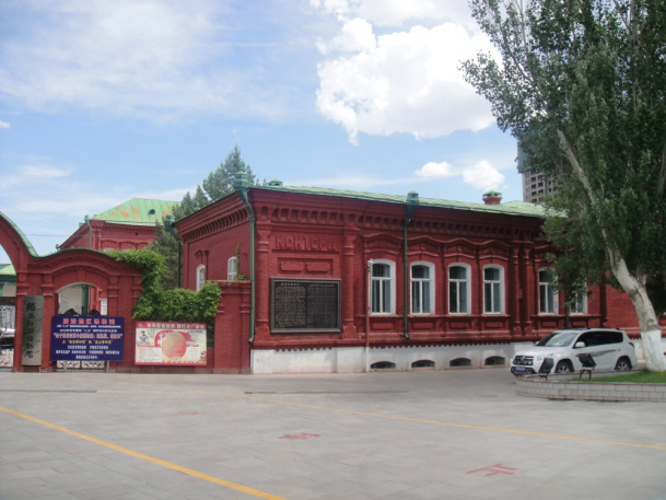 紅樓,二十世紀(jì)初,俄國塔塔爾族商人建造的一座鐵銹紅色俄式建筑,綠色的屋頂與白木質(zhì)的窗欞,形成強烈對比,歐式風(fēng)情的浮雕裝飾、高大氣勢的房屋,都顯示著當(dāng)年的豪華、氣派和時尚。2006年國家列為重點文物保護(hù)單位,現(xiàn)在是塔城地區(qū)博物館。