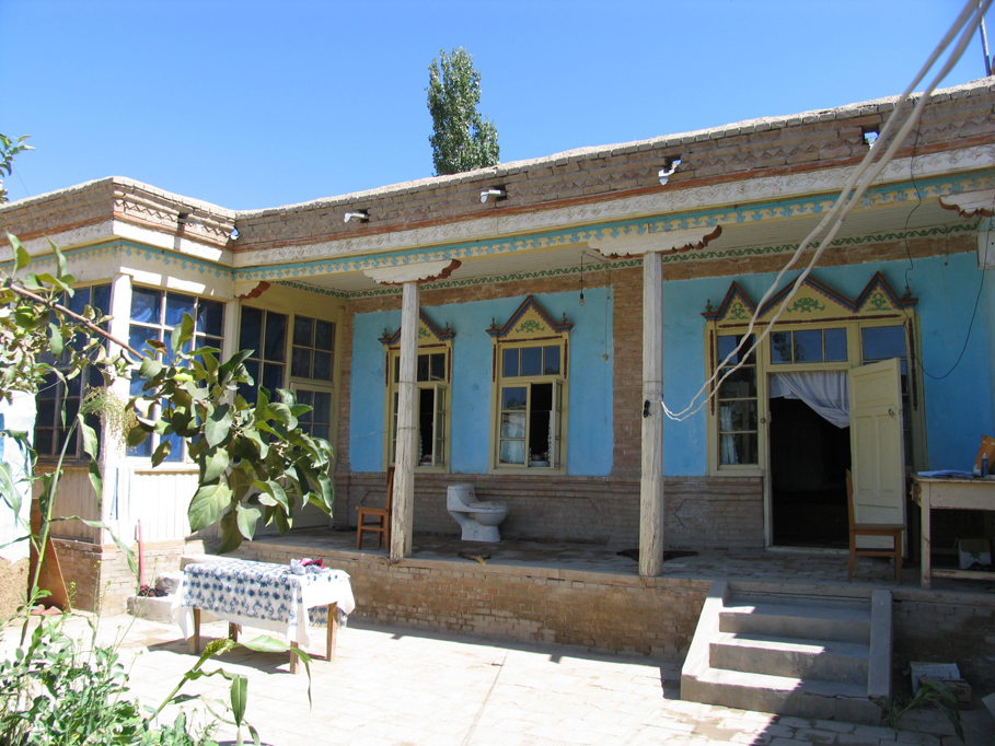 土房的墻一般都很厚,里面粉刷石灰,有的還掛壁毯。墻壁多用石灰刷成淡藍色,安雙層玻璃窗,內(nèi)層為活動式,夏天可以取下,窗外有木屜子,起保護作用。窗戶上還開有小孔,以便通風。房內(nèi)的地面為水泥或磚面。室內(nèi)除有的搭火炕外,其它的裝飾和木房的一樣。不論哪個房間,都可作為臥室,也用于待客,廚房和儲藏室單建,有的還單建馕坑。
