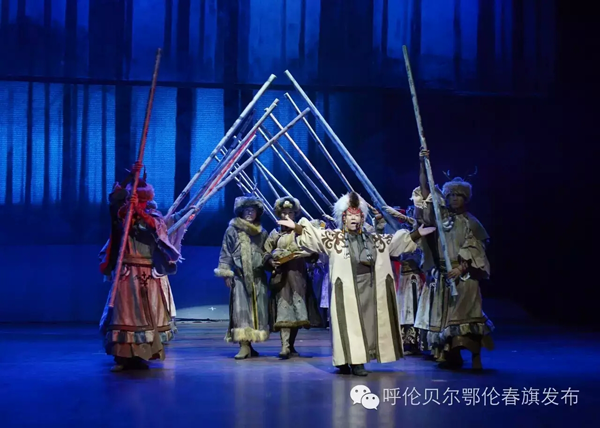 《勇敢的鄂倫春》,由烏蘭托嘎?lián)嗡囆g(shù)總監(jiān),塞納為編劇,三虎、丹德?tīng)枺ǘ砹_斯)、吳莽三人出任總導(dǎo)演;全體演職人員63人,由鄂倫春自治旗烏蘭牧騎專業(yè)人員和15名群眾演員組成,其中鄂倫春族藝術(shù)家曲云、白娟為國(guó)家一級(jí)演員,鄂倫春族群眾演員來(lái)自獵民村與相關(guān)城鎮(zhèn),演員隊(duì)伍中年齡最大的71歲,最小的7歲。演出團(tuán)隊(duì)中鄂倫春族演員占到了接近一半?!队赂业亩鮽惔骸芬远鮽惔好褡濯?dú)有的狩獵文化為主線,詩(shī)意地講述了狩獵生活的全過(guò)程,生動(dòng)鮮活地展示了鄂倫春民族勇敢、細(xì)膩的民族精神和性格特征。該劇還采用了高于原生態(tài)表現(xiàn)手段的唯美手法,將古樸的民族傳統(tǒng)文化與現(xiàn)代藝術(shù)元素巧妙地結(jié)合在一起,既尊重了民風(fēng)民俗,又符合當(dāng)代人的欣賞趨向,煥發(fā)著動(dòng)人心魂的強(qiáng)大魅力。