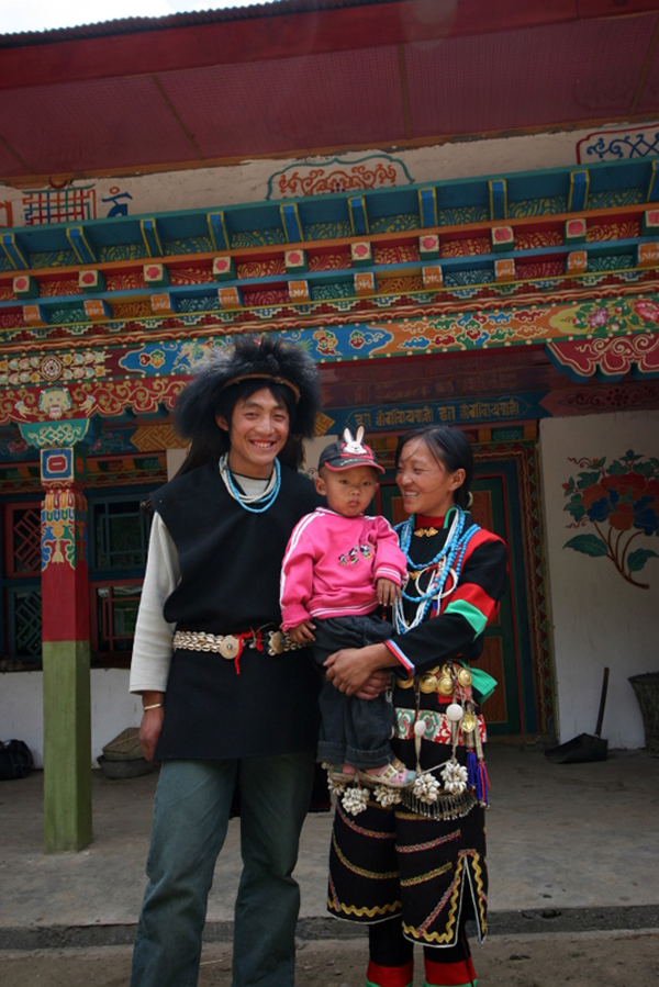 隨著氏族制的解體,女子的社會地位逐漸下降,男子看重女子的貞操,因此公房因不合時宜而慢慢消失,由長房取代。“長房”崩尼語為“南塔”,與邦戈的區(qū)別在于其內(nèi)部有隔墻,在每個居室里設(shè)有火塘,有的一個家族住在一座長房內(nèi),形成一個大家庭。珞巴族大家庭形成的原因一般是一夫多妻或奴隸較多,妻子最多的有十多個,多妻的主要原因是富有的男子可以隨意買賣女子或者是轉(zhuǎn)房。這種家庭的居住形式主要有各妻子不分居和不分居兩種,在丈夫的主持下共同生產(chǎn)生活。就珞巴族家庭形態(tài)的總體來看,仍以一夫一妻制的小家庭為主,因此存在長屋的同時,每個部落都建有供一夫一妻的個體家庭居住的獨立小房,或為干欄式,或為地居式。