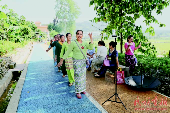 村中游客在錄制抖音。