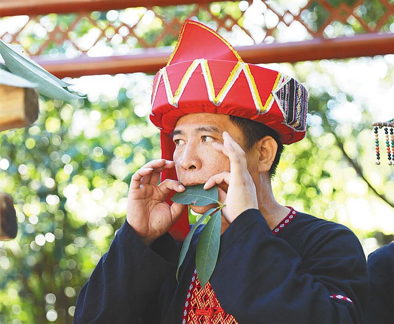 黎族群眾進行“樂器”演奏。李天平 攝