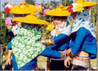 惠東老年婦女一般在腦后梳一發(fā)髻,近似長(zhǎng)方形,然后套上發(fā)網(wǎng),壓平,左右各插一個(gè)別子,上方和中部各插一支梅花,再圍上一條黑巾,用飾有珠花的別針別上。