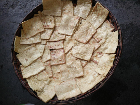 鍋烙豆腐:沿山鍋烙豆腐是精選上好的黃豆作原料,通過(guò)純手工制作成豆腐,切成方塊,用草木灰撒在上面,自然發(fā)酵兩天,再用清水洗凈,切成小塊狀,放入鐵鍋烙黃,沿山鎮(zhèn)以丁家制作的鍋烙豆腐最為有名。到沿山旅游玩耍的客人都會(huì)品嘗這一美食,口感外酥里嫩,即可煮食也可干炒或涼拌。