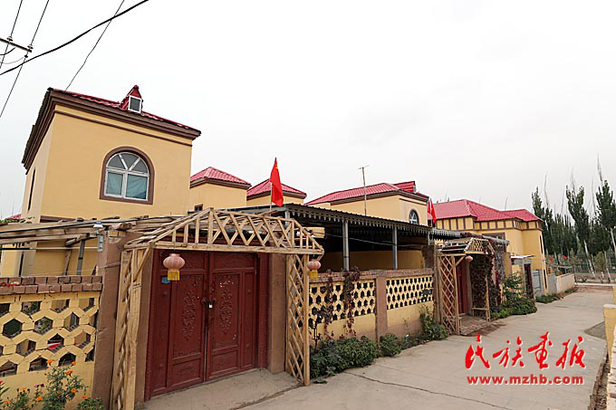 艾日克博依新村家家戶戶新居門(mén)上都掛著國(guó)旗。