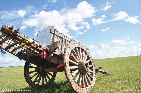 蒙古族牧民常用的一種木制大輪車。多用樺木或柳木制做。車輪高約1米,車身重約百斤,可載重300—450公斤,日行約30余公里。每車用一頭牛來拉,一人可駕馭數(shù)輛,適于在草原、沙漠、雪地等行走。亦可將數(shù)十輛勒勒車首尾相接形成近百米長的車隊,十分壯觀,也形成了草原上特有的風情。現(xiàn)在已多被膠皮鐵輪的軸承車所替代。另外還有一種“蒙古轎車”,是一種在勒勒車基礎(chǔ)上經(jīng)過改造專門乘人的車。其與勒勒車不同之處在于車體上有用柳條子彎曲后扎成的車棚,棚子的外面用毛氈包圍,形成一個既擋陽光,又擋風雨,防曬御寒的帳篷。