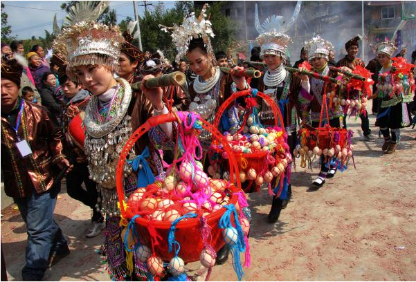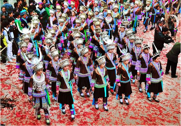 除此之外,春節(jié)期間亦是各民族群眾婚嫁迎娶、走親訪友的高峰期,苗族的送親、送年飯、走妹坐夜、蘆笙打同年等異彩繽紛的傳統(tǒng)禮俗將帶給你不一樣的體驗(yàn)。