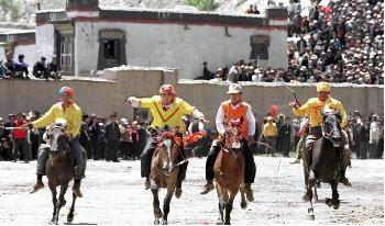 藏歷4月10日到28日,是江孜傳統(tǒng)的節(jié)日—達瑪節(jié),藏語意為跑馬射箭。據(jù)傳說江孜法王繞丹貢桑帕巴桑布,是薩迦王朝的內(nèi)務(wù)大臣,又是江孜法王,在群眾中頗有威望。帕巴白去世后,他的弟子每年做祭祀,以示紀(jì)念。后因戰(zhàn)亂,祭祀中斷。至藏歷火鼠年(公元1408年)繞丹貢桑帕任江孜法王,遵其父貢桑帕的遺囑,恢復(fù)祭祀。這一年藏歷4月10日至4月27日,繞丹貢桑帕為其祖父念經(jīng)祭祀,直到28日,開始進行娛樂活動。內(nèi)容主要是曬唐卡畫、宗教文藝活動等。除此之外,還有角力、跑馬、拋石頭等娛樂活動。這些活動,全由法王的部下、兵丁、傭人承辦。從這年開始,固定這段時間為每年一度的祭祀盛典節(jié)日。到了扎西繞丹帕(公元1447年)統(tǒng)轄江孜的時候,娛樂活動更為豐富,除上述內(nèi)容外,還增加了跑馬射箭。于是流行為盛大的江孜達瑪節(jié)。