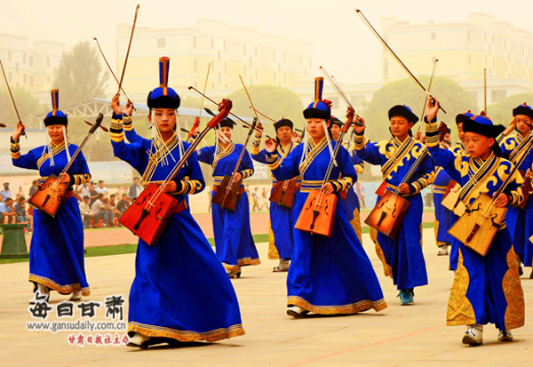 2016年8月底,肅北作為甘肅省唯一以蒙古族民族為主體的自治縣,特意承辦了八?。▍^(qū))第七屆“母語(yǔ)杯”蒙古文書法大賽作品展。在其頒獎(jiǎng)晚會(huì)上,肅北縣烏蘭牧騎登臺(tái)亮相,博得一次次熱烈的掌聲。演出節(jié)目包括:歌曲《父親的故鄉(xiāng)》《陽(yáng)光下的母親》《不會(huì)忘記》,舞蹈《筷子舞》《薩吾爾登》,馬頭琴齊奏《風(fēng)中的蘇力德》等。