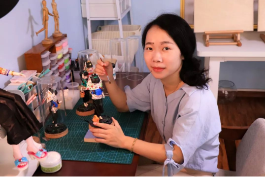 讓人驚艷的,還原度無比高的作品人物服飾,這其中還有冰冰媽媽的一些的建議呢,雕雕琢琢,便有了生動形象的這些精致作品。聊起整個創(chuàng)作過程的冰冰,笑盈盈地說:創(chuàng)作粘土惠女作品,是一件讓我感到滿足和幸福的事情。之后也會持續(xù)創(chuàng)新,精益求精地進(jìn)行創(chuàng)作。