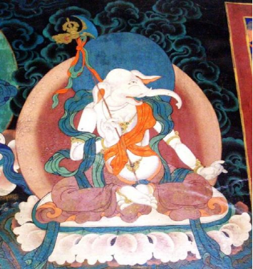 堪日派也稱“藏孜”畫派,早期受鄰國(guó)尼泊爾和印度的影響較大,流行于江孜和日喀則,特點(diǎn)是構(gòu)圖飽滿、色彩渾厚深沉,人物造型豐滿、追求曲線變化。這一畫派的壁畫多繪制在江孜白居寺以及日喀則扎什倫布寺、薩迦寺,后兩者雖同屬該派,但由于繪制年代不同,風(fēng)格上略有差異。