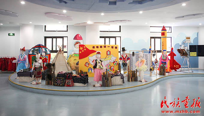 同一天下午,一場(chǎng)精彩的T臺(tái)秀在上海市閔行區(qū)梅隴鎮(zhèn)弘梅小學(xué)上演。小學(xué)生們身著民族服裝亮相,動(dòng)感的音樂(lè)、精彩的表演,將“民族團(tuán)結(jié)一家親”的理念演繹得生動(dòng)活潑。學(xué)校布置的民族文化墻上,展示了我國(guó)56個(gè)民族的風(fēng)土人情,營(yíng)造了多姿多彩的民族文化氛圍,讓民族特色文化陪伴在學(xué)生身邊。
