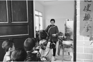 2012年,國家實(shí)施義務(wù)教育階段學(xué)生營養(yǎng)餐計(jì)劃,因?qū)W生少,學(xué)校沒有配備專門的食堂人員,吳浪就讓妻子回鄉(xiāng)義務(wù)給孩子們煮飯,直至2015年底,楊勝云才拿到每月1200元的工資。