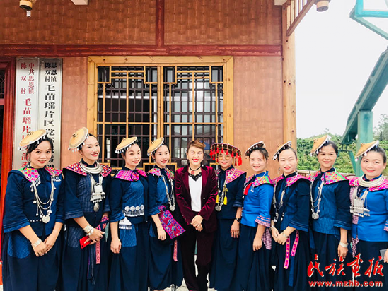 烏蘭圖雅在廣西河池市環(huán)江縣演出后與各族群眾合影留念。