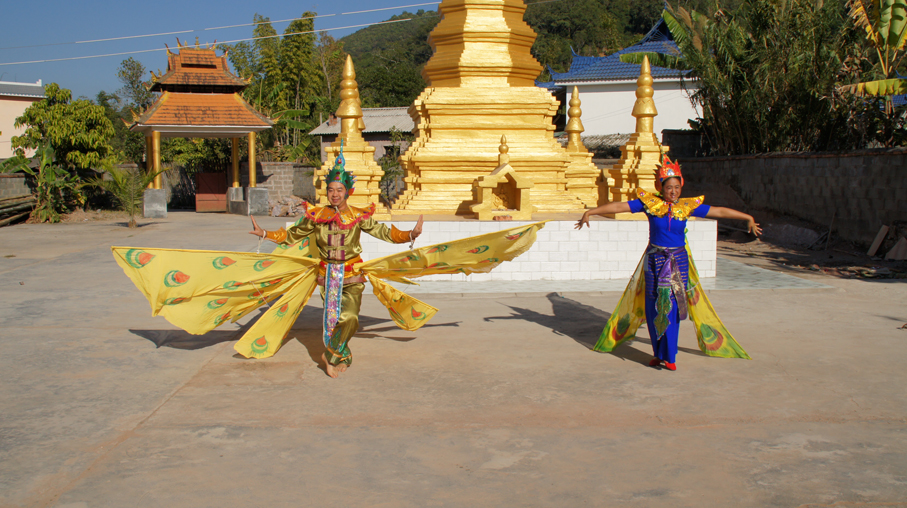 表演性舞蹈有“孔雀舞”“大象舞”“魚(yú)舞”“蝴蝶舞”“篾帽舞”等。最具代表性的是孔雀舞。