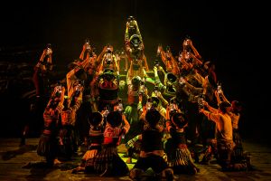 西疇縣為云南省文山壯族苗族自治州轄縣。上世紀(jì)90年代以來,在黨中央“打好扶貧攻堅(jiān)戰(zhàn)”的號(hào)召下,一代代西疇人以“大山壓頂不彎腰、困難面前不低頭”的精神,向石漠化程度嚴(yán)重的大山宣戰(zhàn),硬是在石頭縫里造出1500畝適合栽種的土地,展現(xiàn)出令世人驚嘆的西疇精神,造就了今天“望得見山、看得見水、記得住鄉(xiāng)愁”的西疇美麗鄉(xiāng)村。舞劇《幸福花山》就是在這樣的時(shí)代背景下譜寫出的一部壯麗詩篇。