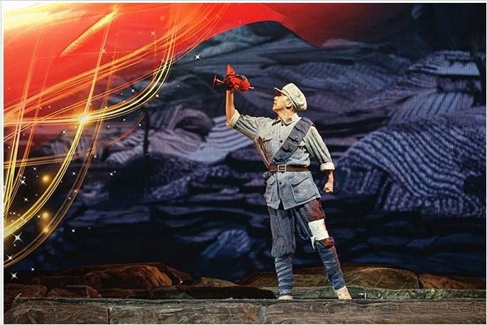 《花兒與號手》是一部以紅軍長征路過六盤山為背景創(chuàng)作的音樂劇,全劇展現(xiàn)了長征路上紅軍戰(zhàn)士的理想信念和“長征是宣言書、是宣傳隊、是播種機(jī)”這一核心思想,弘揚了中國共產(chǎn)黨百年征程中展現(xiàn)出的無私無畏的革命精神。