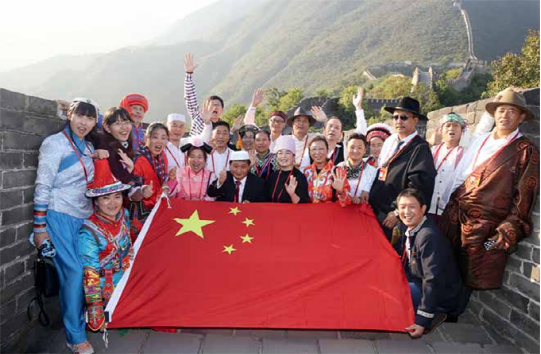 2017年全國少數(shù)民族參觀團(tuán)的各族代表參觀慕田峪長城。(民族畫報(bào)記者 娘吉加 攝影)