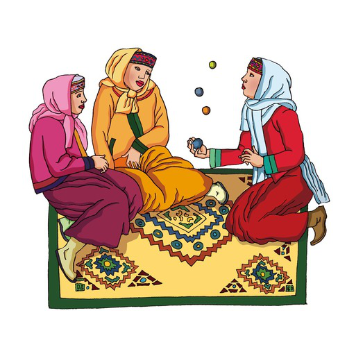 塔吉克族(抓石子):塔吉克族有33538人,聚居在新疆塔什庫爾干塔吉克自治縣以及喀什地區(qū)。塔吉克族以善騎著稱,刁羊、掛波齊(馬球)等馬上游戲競技,都是塔吉克人最喜愛的群眾體育、娛樂活動。