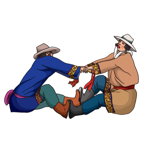 土族(輪子秋):土族有191624人,聚居在青海省互助、民和、大通等縣。土族的體育項(xiàng)目主要有輪子鞦、賽馬和賽牦牛、武術(shù)、 打毛蛋、臺毽巴嘎、丟錢、“抓子兒”、“抓羊”、解繃繃、罕躍、阿斯陶(民間棋類)、喇嗎躍(民間棋類)等。