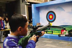 小朋友在少數(shù)民族體育花會上體驗(yàn)射弩。(廣州市民宗局提供)