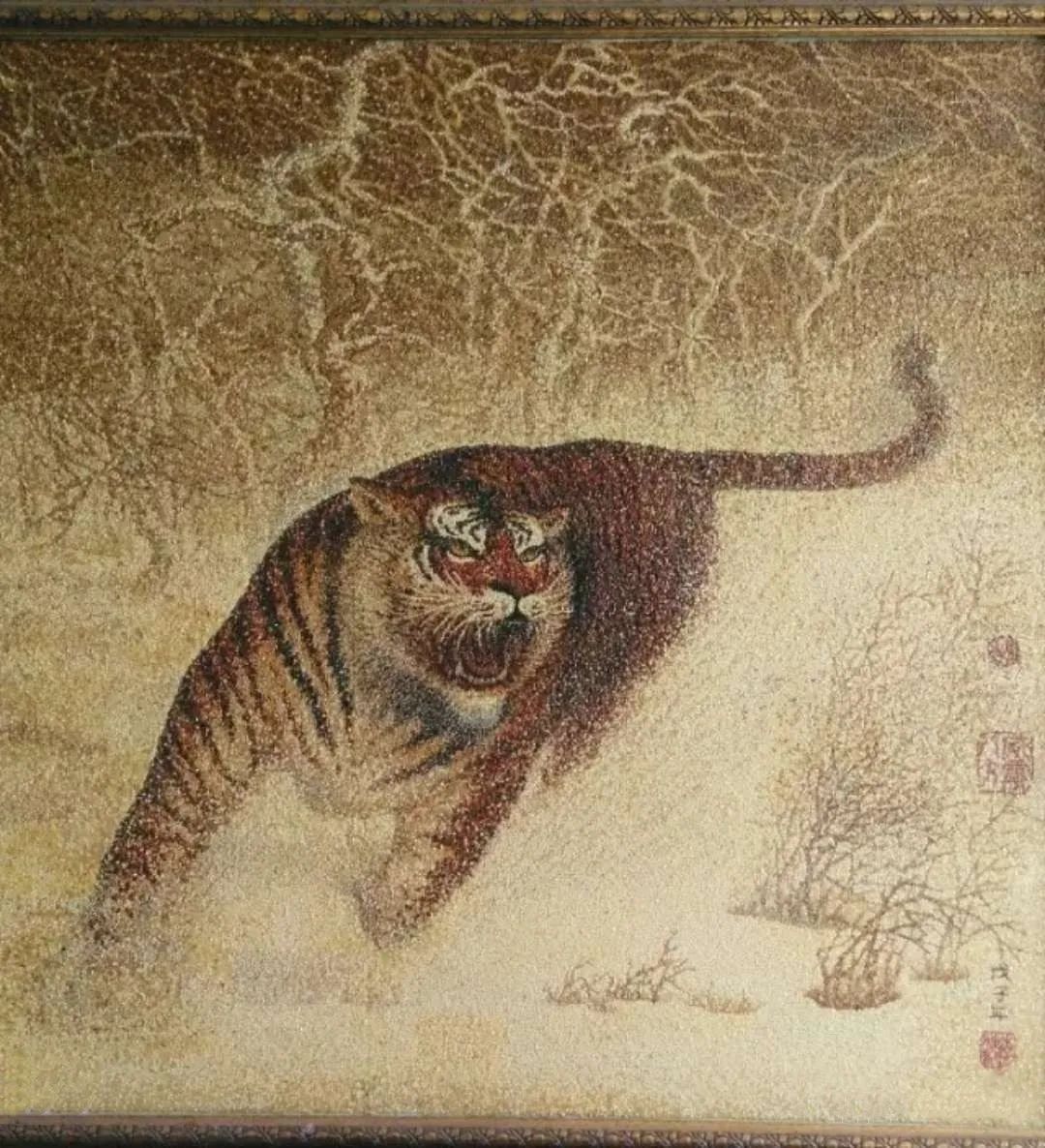 草原五谷畫起源于唐代,唐朝滅亡后的五代時期,流傳至中國北方,到了遼王朝建立后,開始在遼國中心區(qū)域——通遼市地區(qū)興起,并形成五谷畫的獨特支系,具有濃郁游牧特征的草原五谷畫派,在遼王朝存續(xù)的100多年里,是它的黃金期,遼王朝滅亡后,草原五谷畫在漫長的歲月里一直在民間傳承不為人知,至今已有千年歷史的草原五谷畫再現于世人面前。