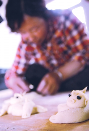 1、春節(jié)(過(guò)大年)來(lái)臨前,家庭婦女用白面捏制小狗、小貓、玉兔、魚(yú)娃娃、蓮花的面塑制品,上面點(diǎn)綴紅棗、花生等。以象征萬(wàn)事如意,多福多壽、家庭和睦。