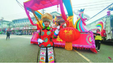 當日,擂臺廟會上三官儀仗隊、天官賜福等耳目一新的民俗活動一經亮相,就令現(xiàn)場觀眾大呼過癮;同步舉行的秦腔戲劇、傳統(tǒng)皮影戲、花兒專場等展演與優(yōu)秀電影展播等,好戲連臺、精彩紛呈;充滿濃郁地方特色的彩虹故鄉(xiāng)、七彩農業(yè)、土族盤繡、青稞美酒、互助家政等代表互助“五張名片”的主題彩車巡演,在亮出非遺文化、民俗文化、河湟文化和農耕文化等元素符號的同時,彰顯出互助縣堅持生態(tài)優(yōu)先、綠色發(fā)展,建設國家全域旅游、全國現(xiàn)代農業(yè)、土族文化傳承、青稞產業(yè)振興、勞務經濟發(fā)展“五個示范區(qū)”的生動實踐;19個鄉(xiāng)鎮(zhèn)精妙絕倫、氣勢磅礴的舞龍表演,傳達出無窮意趣、雄渾氣勢和神韻風采,寓意土鄉(xiāng)兒女奮進新征程、建功新時代的豪邁。