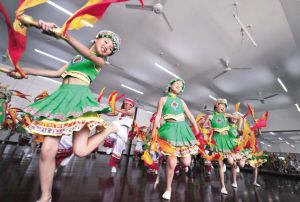 “同學(xué)們,耍起來的時候一定要把手臂擺起來?!痹诙魇┦邪沤抖弊遴l(xiāng)民族初級中學(xué),老師正在給學(xué)生們傳授表演非物質(zhì)文化遺產(chǎn)板凳龍的技巧。為傳承中華優(yōu)秀傳統(tǒng)文化,學(xué)校開設(shè)了特色課程。“雄鷹展翅”“雪天蓋頂”“黃龍纏腰”“猛虎下山”……老師教得耐心細致,學(xué)生舞得有模有樣。