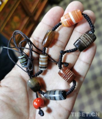在藏語(yǔ)中,天珠被稱為“瑟”。在普蘭邊貿(mào)市場(chǎng)中,并不是所有的商家都有天珠。但凡是有上好天珠的商家,必有很大的吸引力。在市場(chǎng)中,他們也充滿自信。我在市場(chǎng)中走訪了多家有天珠的商店,并簡(jiǎn)要總結(jié)了多數(shù)商家對(duì)天珠的認(rèn)定標(biāo)準(zhǔn)。在尼泊爾商家的眼中,天珠的質(zhì)量要看幾個(gè)方面。一是“石頭”的質(zhì)量,上好的“石質(zhì)”是好天珠的必要條件。他們?cè)跈z驗(yàn)時(shí),多用門(mén)牙上下撞擊天珠的不同位置,便可以分辨出天珠料子的好壞。在那里,我也遇到了幾位買(mǎi)天珠的僧人,其辨別過(guò)程中也使用了這樣的方法。二是包漿程度,一顆好天珠就要有相應(yīng)的歲月的痕跡,而包漿就是歲月長(zhǎng)短的最重要的代表。當(dāng)然,這也并非絕對(duì),因?yàn)榘鼭{的形成主要依靠人為的把玩,那些沒(méi)有相應(yīng)包漿但達(dá)到上千年的天珠在他們眼中依然很快便會(huì)被識(shí)別出。在尼泊爾的茶館中,一位當(dāng)?shù)氐牟刈迦罕娤蛭医榻B了一顆天珠,據(jù)說(shuō)有人曾用成都的一套房子來(lái)?yè)Q,但并未打動(dòng)主人,那顆珠子擺在我的面前,沒(méi)有所謂的包漿,但歲月形成的厚重感卻十分明顯。三是天珠的孔道,因?yàn)榭椎酪彩菤q月的見(jiàn)證者,一般孔道越是圓潤(rùn)便越具有價(jià)值。