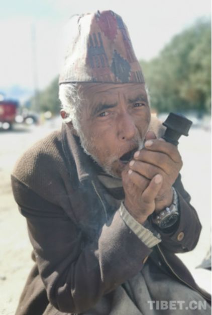 普蘭自古是與南亞開展貿(mào)易的要地,境內(nèi)有多條通外山口。斜爾瓦口岸與強拉山口是重要的邊境貿(mào)易通道,也是印度和尼泊爾朝圣者的通道。縣城內(nèi)有一個邊貿(mào)市場,每年的4-10月間,大量的尼泊爾邊民和印度客商集聚在那里。到普蘭縣城打工的尼泊爾邊民每天早早地就在市場邊或路邊等待一天的工作。他們吃苦耐勞,而且很少討價還價。除了能看到繁忙的貿(mào)易外,市場周圍還能看到獨特的文化現(xiàn)象,比如使用火石打火吸煙。他們的煙斗多是用泥土燒制的,吸煙時以一塊濕布包住煙斗底部,再以雙手捧住,把嘴張大稍稍吸氣便可以了。在市場閑逛時,可能會有種身在異域的錯覺,因為空氣中傳入耳朵的也分不清是尼泊爾語、藏語、英語還是漢語,從一個客商的嘴里可能就會不停地冒出各種語言。在那里,既是在進(jìn)行著商品的貿(mào)易,也是在進(jìn)行著文化的交流與融合。