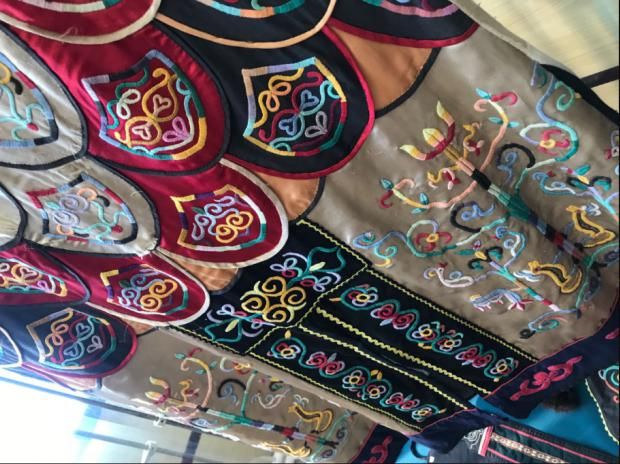 學(xué)校的博物館里陳列著那乃族文物,文物件數(shù)不是特別多,其中以服裝服飾類(lèi)居多。