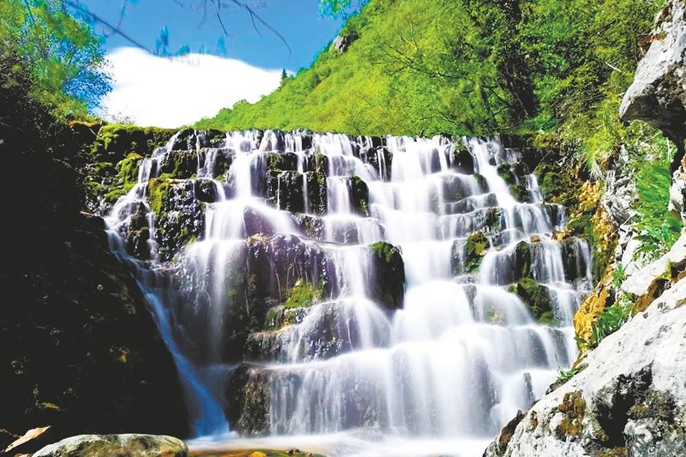 在卡索峽景區(qū),群山涌翠,古木參天,花木繁茂,芳香馥郁,清脆的鳥(niǎo)鳴不絕于耳,野兔、馬鹿、馬雞等野生動(dòng)物不時(shí)出沒(méi)于河畔叢林,野趣十足。
