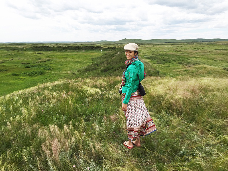 遠(yuǎn)遠(yuǎn)的,一輛嶄新的白色轎車在草原上揚(yáng)起一陣塵土,然后很快停在我們眼前。一對(duì)雍容華貴、穿著蒙古袍的俊男美女從車?yán)镒叱?,在午間強(qiáng)烈的陽(yáng)光下閃閃發(fā)亮,氣場(chǎng)之強(qiáng)大的令人過(guò)目難忘。直到他們熱情地伸出雙手,我們才如大夢(mèng)初醒般上前拜見(jiàn)。前來(lái)的女子正是舒泥,而男子便是我們要拜訪的牧民家的男主人鋼寶勒道。
