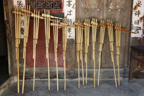 第二天早上,每人發(fā)一節(jié)竹管就種地去了。因?yàn)樗皇窃谝粋€(gè)地方,是每個(gè)人在一塊土上,飯熟了大哥在家發(fā)出信號,老二聽見了他就吹,誰聽見了誰就吹,聯(lián)絡(luò)起來,大家一起回家吃飯,大家覺得挺有興趣。