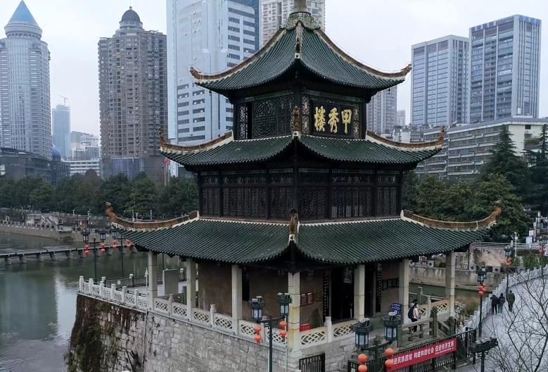 屹立在南明河上的甲秀樓,是繁鬧市區(qū)中不可多得的清幽之地,景區(qū)內(nèi)古色古香,景區(qū)外高樓林立,在現(xiàn)代文明中閃爍著歷史的光芒,昂揚著“甲秀天下”的城市精神風(fēng)貌。